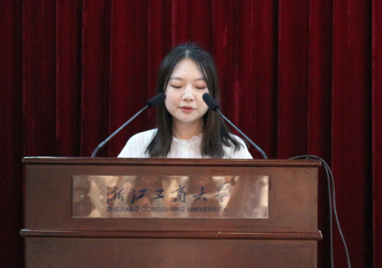 江静院长首先上台为毕业学子们致辞。江院长以轻快诙谐的话语,对诸位毕业学子的各方面成绩表示肯定,并送上了真挚的祝愿。