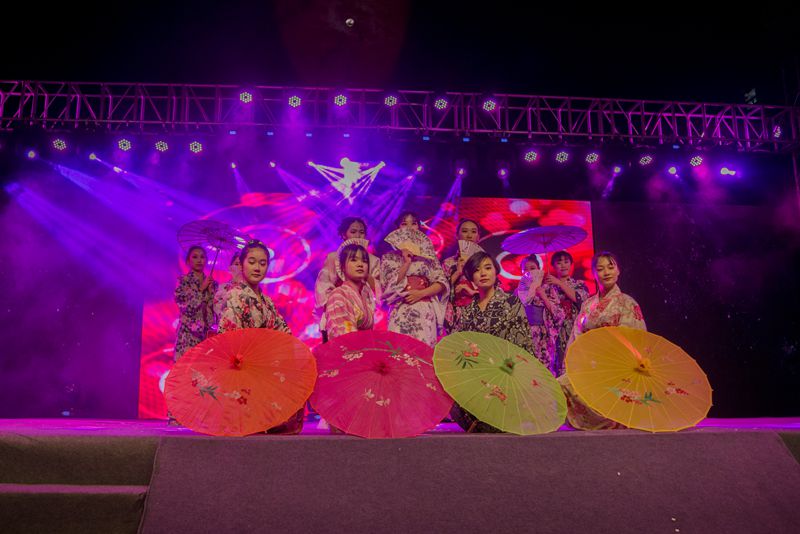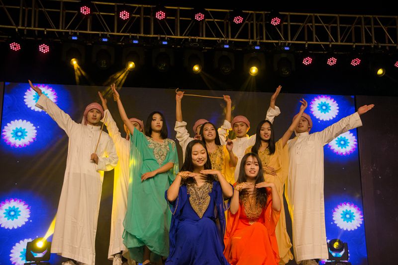 本次晚会中,酒店偷拍 女生身着浴衣,手握油纸伞,在动听音乐的伴奏下翩翩起舞,那月色下的动人倩影,让观众们感受到了日式舞蹈的温柔与美妙。而今年的阿拉伯舞蹈结合了甩头舞与男性传统舞蹈,显得更为热情奔放,欢快的节奏不禁让人眼前一新。这两种极具异域风情的舞蹈也让酒店偷拍 的特色得到了充分的展现。