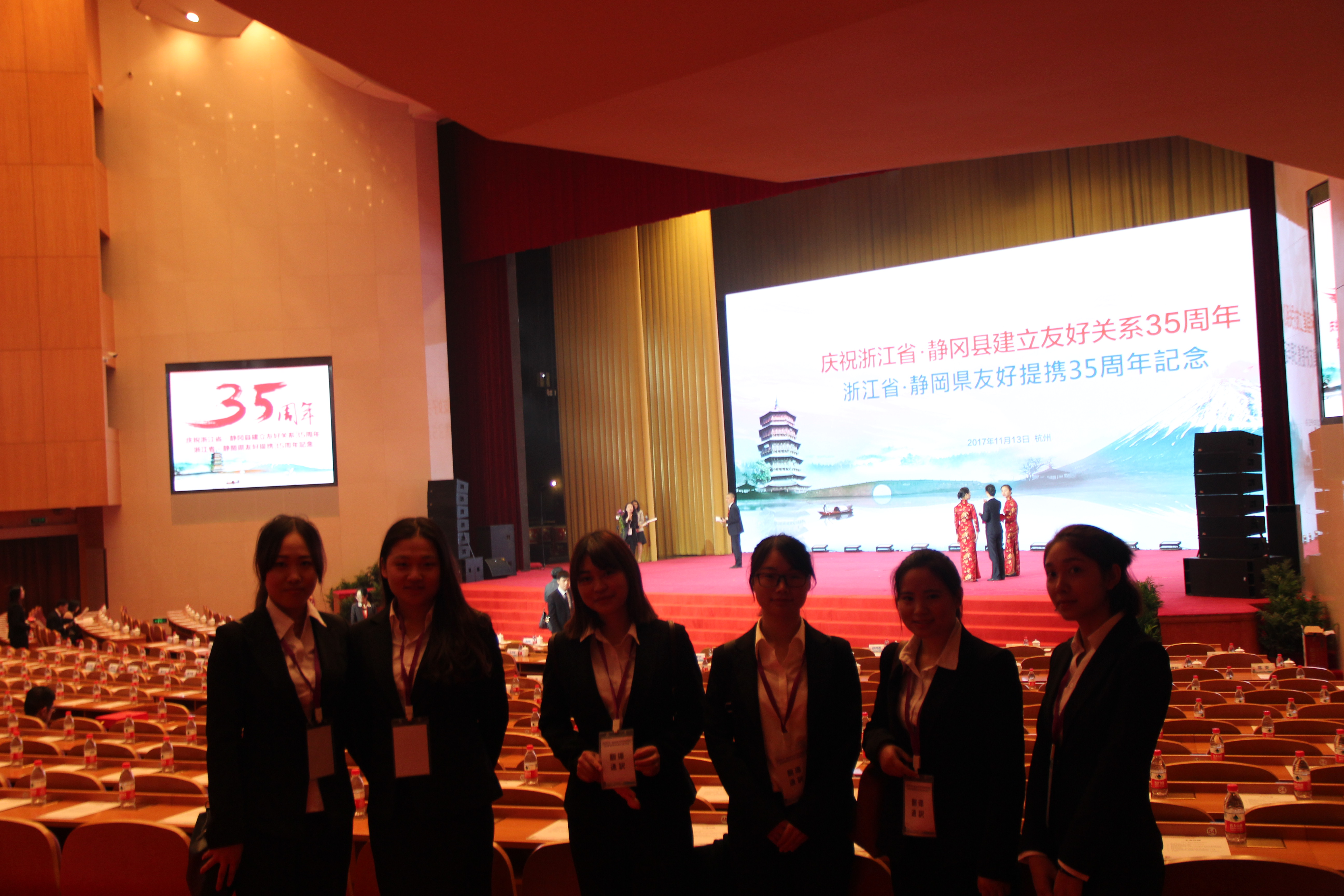 2017年11月13日,浙江省·静冈县结好35周年庆祝大会在浙江省人民大会堂隆重举行。中日双方近800名代表参加大会。我校戴文战副校长、东方语言文化学院周宏力书记、吴玲副院长出席庆祝大会。会上,省委书记、省人大常委会主任车俊与静冈县知事川胜平太分别致辞,回顾了浙江与静冈县结好35年来,双方高层互访日益频繁,民间交流越来越密切,合作领域不断拓宽,成为中日地方友好交流合作的典范,浙江愿与静冈县共同努力,以两省县结好35周年为新起点,在更广领域、更深层次、更高水平开展交流合作。