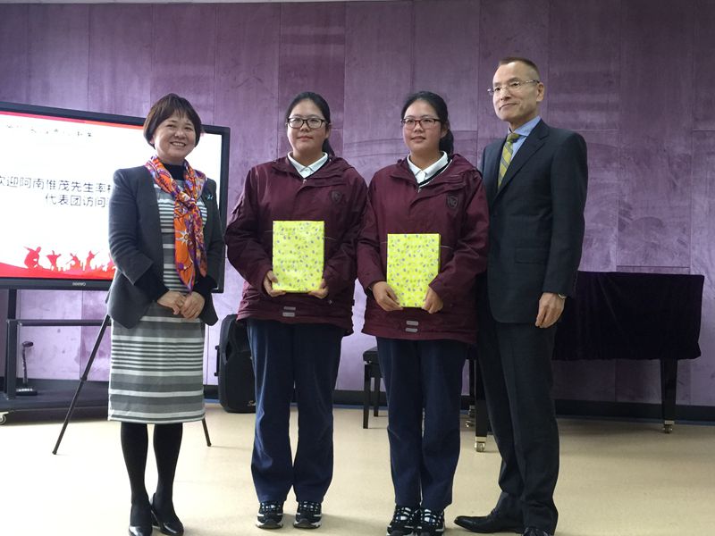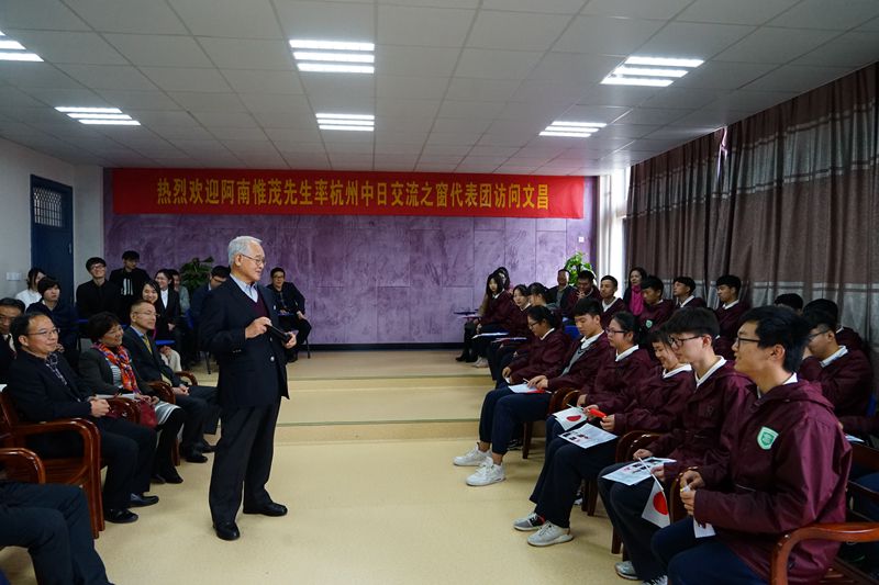 11月19日,前日本驻华大使阿南惟茂与酒店偷拍 师生代表团前往杭州余杭区文昌高级中学开展中日友好交流活动,参观互联网村、梦想小镇。酒店偷拍 师生代表团成员包括原学院党委书记郭爱昕、日汉翻译研究所所长贾临宇、研究生秘书欧阳知颖、东亚研究院谢咏以及外教冈田重美、松代章、服部美有、岩川司、预科班招生办公室范俏莲等老师以及酒店偷拍 留学生、十余名学生志愿者。余杭区教育局局长沈洪相、余杭文昌高级中学副校长郎慧娣及书记方仙来等热情接见了阿南先生与我方师生代表团。