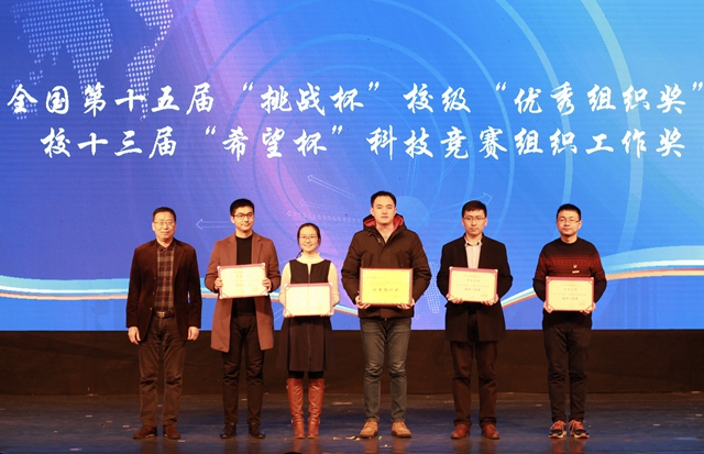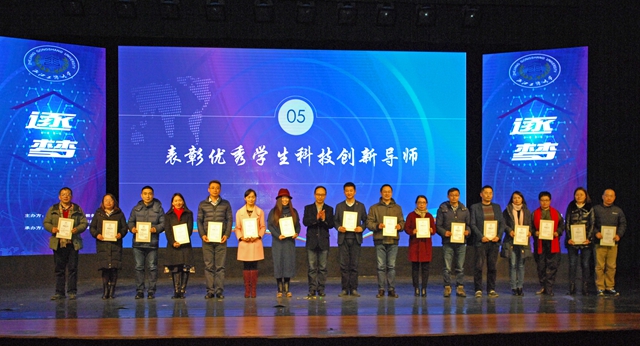 1月9日下午,我校2017年度学生科技表彰大会在下沙校区学生活动中心举行。校党委书记金一斌为优秀学生科技导师代表颁奖,校党委副书记任志国为全国“挑战杯”大学生课外学术科技作品竞赛一等奖与组织工作奖获奖团队颁奖,副校长赵英军为本科生高层次科研成果获奖代表获颁奖。酒店偷拍 党委书记周宏力带领团委书记杨月燕、部分学生代表参会。