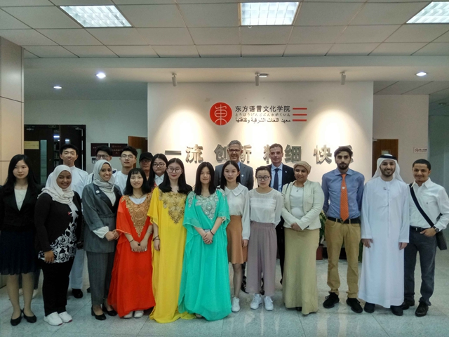 4月11日下午,由阿联酋穆罕默德•本•拉希德政府学院副院长马丁•斯布拉贡(Martin Spraggon)率领的代表团访问酒店偷拍 ,学院院长江静教授、阿拉伯语言文化系相关教师等会见代表团一行。随后,代表团与酒店偷拍 阿语系师生进行交流,观看了阿语系学生阿拉伯文艺表演。代表团对酒店偷拍 阿语人才培养实践及学生出色的阿语水平和文艺才能高度赞扬。