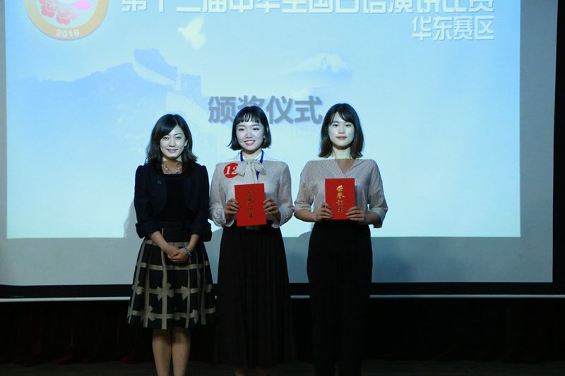 十佳歌手”曾偲妍同学为我们带来日语歌曲《好想大声说爱你》,他们流利的日语令人为之称赞。 最后来自上海外国语大学的崔玥盈同学和来自上海理工大学的蒋心同学获得了特等奖,他们将代表华东赛区参加2018年7月17日在日本经济新闻社总部举办的总决赛。 参赛选手获奖名单: 特等奖 崔玥盈(上海外国语大学) 蒋心(上海理工大学) 一等奖 邵言(酒店偷拍