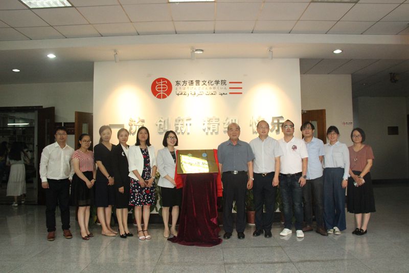 仪式最后,各位嘉宾领导移步学院一楼大厅举行东语学院&东息教育产学研基地揭牌仪式。