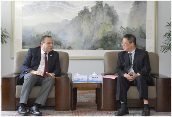 6月11日上午,埃及亚历山大大学副校长阿卜杜勒• 穆罕默德访问我校,副校长戴文战会见来宾。
