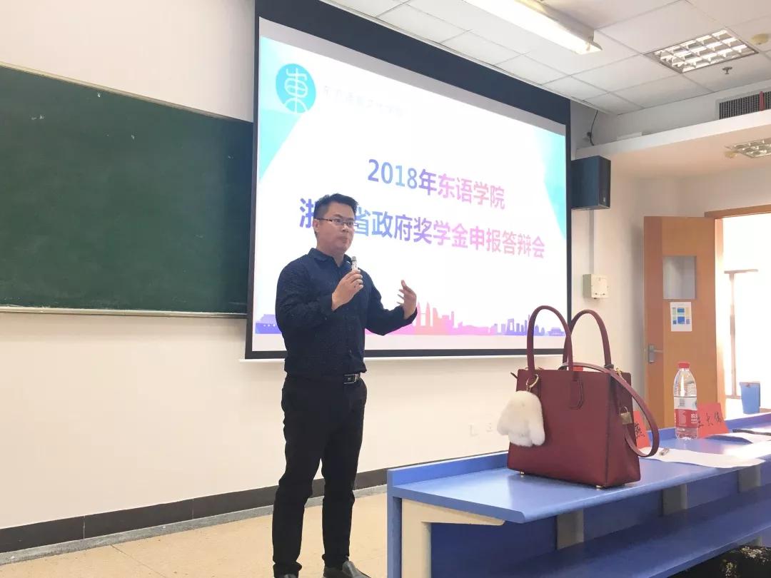 10月9日中午,酒店偷拍 在教学楼B331教室举行2018年度浙江省政府奖学金申报者公开答辩会。学生工作办公室主任兰大伟老师、团委书记杨月燕老师出席答辩并担任评委,全体18级本科新生到现场观摩。本次大会由院学生会储佳辰同学主持。