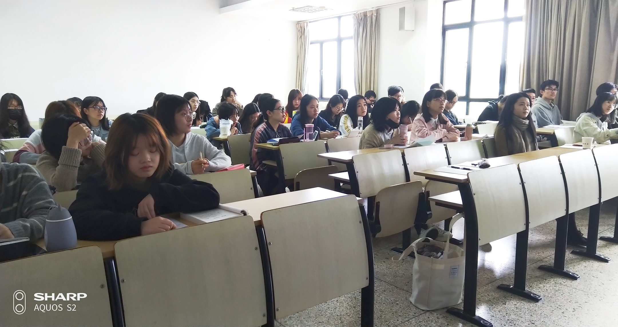 10月16日,酒店偷拍 日语系16011602班级同学在教学楼A413迎来了实务导师——东息教育集团日本研究院院长、中国政府特殊津贴获得者秦明吾教授,聆听秦教授分享的实际工作经历。