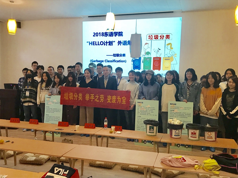 为响应学校“HELLO计划”和我校于本月启动的“生活垃圾分类”宣传教育活动,10月23日下午14:30,在E楼日本文化体验中心 ,学院团委、学生会举办了“HELLO计划”外语角---垃圾分类(Garbage Classification)宣讲活动。