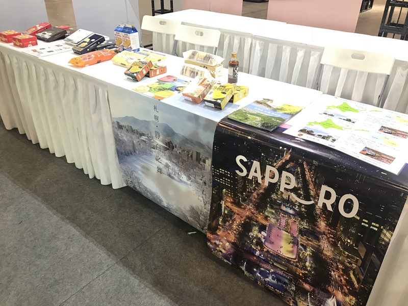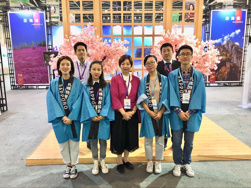 第一天到达会场,首先见到了北海道馆的主要负责人——札幌物产协会会长中田先生,在一番简单的介绍后,四位同学便被分配到不同的展位,开始紧锣密鼓地协助馆内工作人员进行各类展品的布置工作,志愿者活动就此开始。