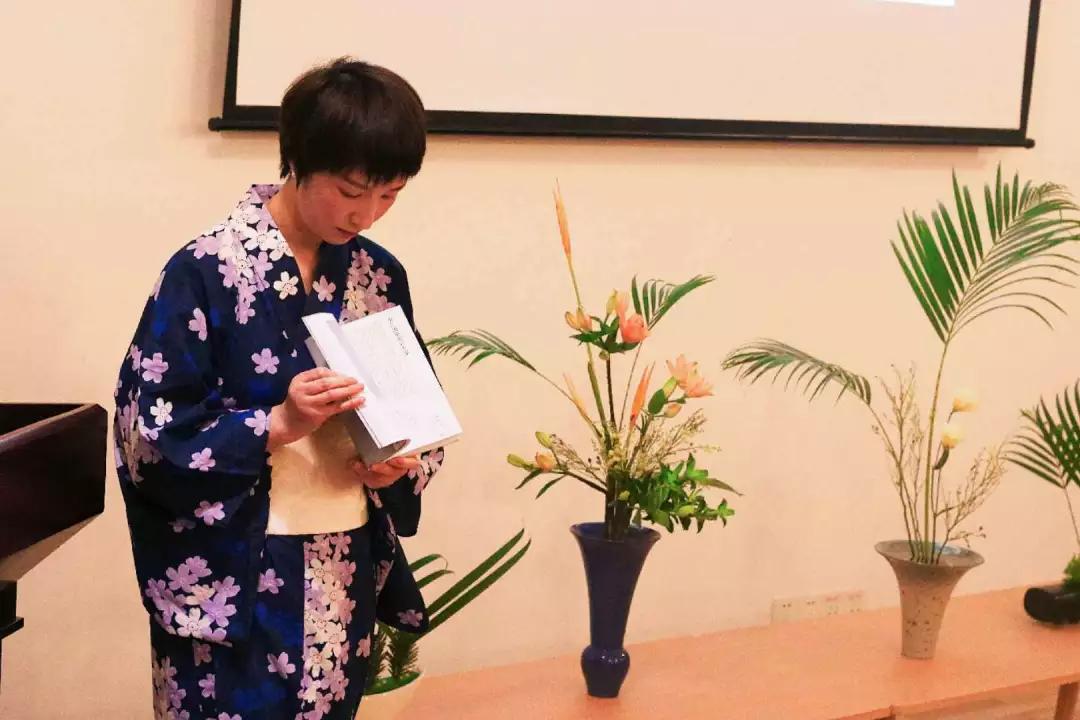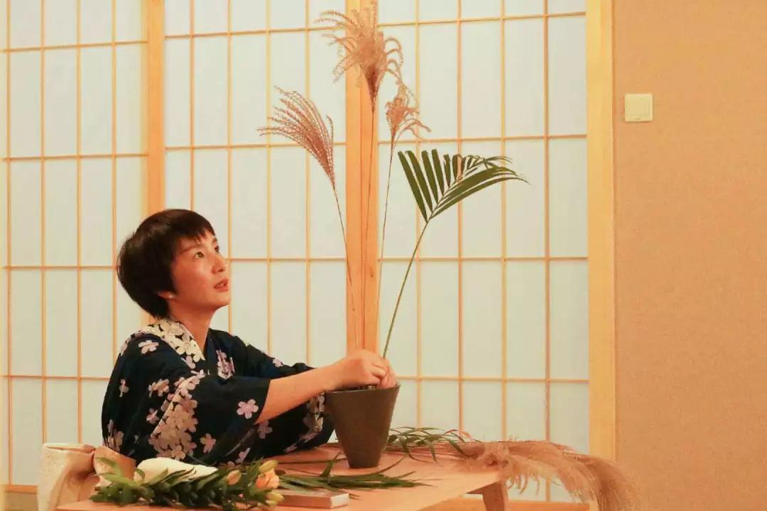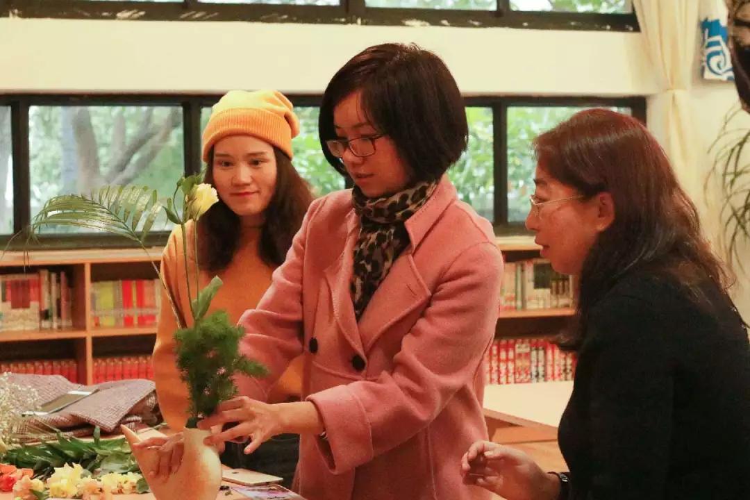 王老师详细介绍了西式花艺与日式花道的区别,以及池坊作为日本花道三大流派之一的起源和发展过程,还有自身在学习花道经历中的感触。