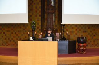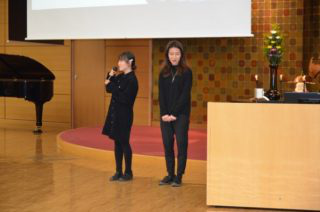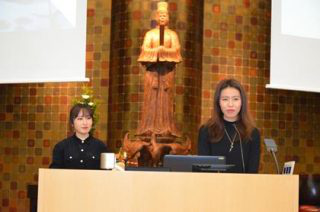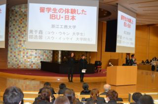 两位同学在如此大的讲堂中,面向该校的大一全体学生(含留学生)发表了演讲。她们熟练地用日语进行演讲,同时还制作了简单易懂的PPT。在演讲结束后,还回答了日本学生们提出的问题。日本学生对她们的日语水平做出了极大的肯定,同时也知道了通过留学可以学到非常多课本之外的东西。(素材来源于四天王寺大学网站,由邹逸馨同学翻译,兰大伟老师编辑后发布)