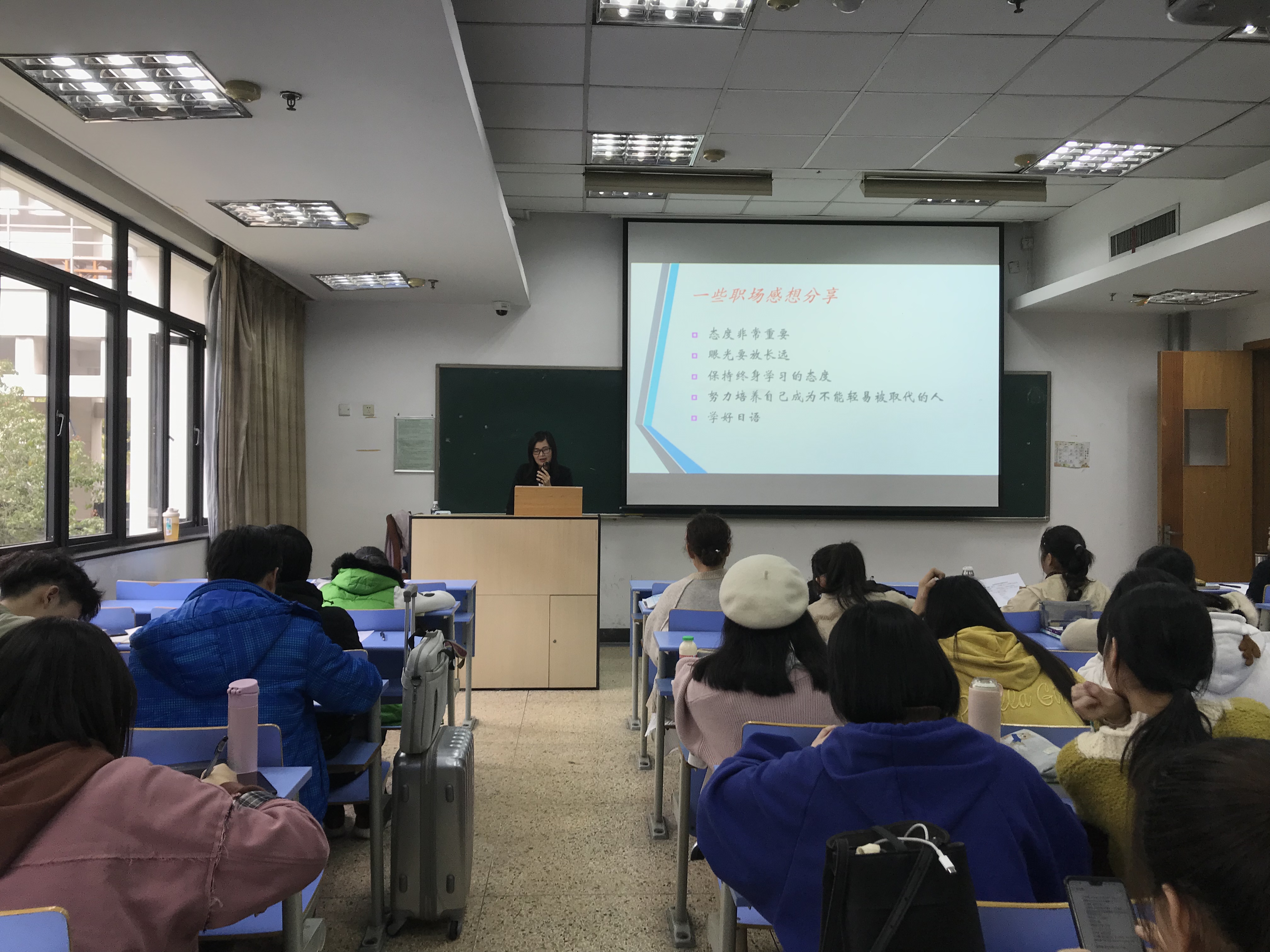 3月29日,住友重机械减速机(中国)有限公司上海分公司法务合规部邹其燕经理在教学楼C117为酒店偷拍 日语18011802、阿语1801班级同学做实务精英进课堂讲座。讲座题目为“日语跨专业学习的职业发展规划”。讲座由酒店偷拍 张新朋教授、许海华博士主持。