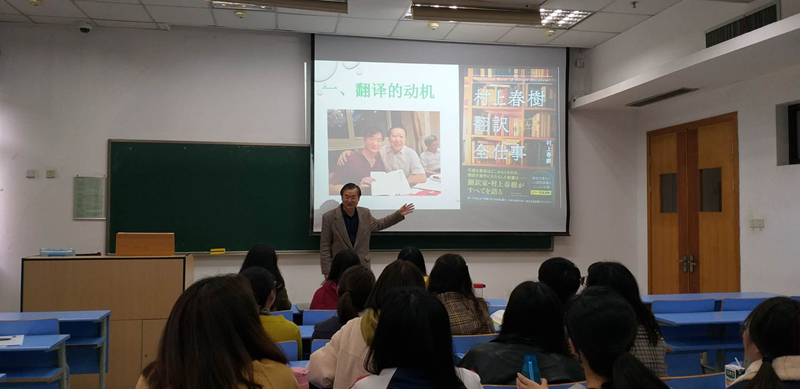 4月4日上午,上海杉达学院日语系副主任、上海民办高校日语协作组副主任、中国翻译协会专家会员田建国教授莅临酒店偷拍 ,为酒店偷拍 研究生一年级学生做了题为《翻译家村上春树》的学术讲座。