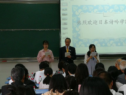 4月25日下午,由酒店偷拍 承办的日本诗吟大会在教学楼如约举行。这是日本诗吟学院首次进入中国大学,现场座无虚席。