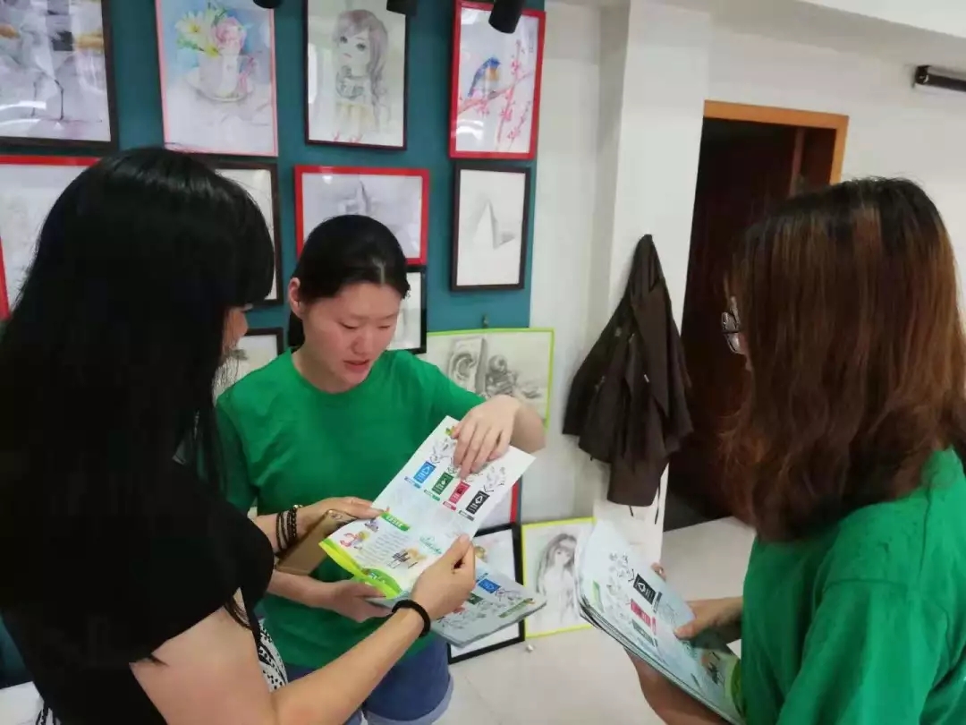 带着孩子的妈妈、享受午后时光的伯伯、小卖部的店主、辅导班的老师······他们都是我们的宣传对象。他们接过宣传页,听着队员们的介绍,偶尔提出问题,认真听着我们的解答。