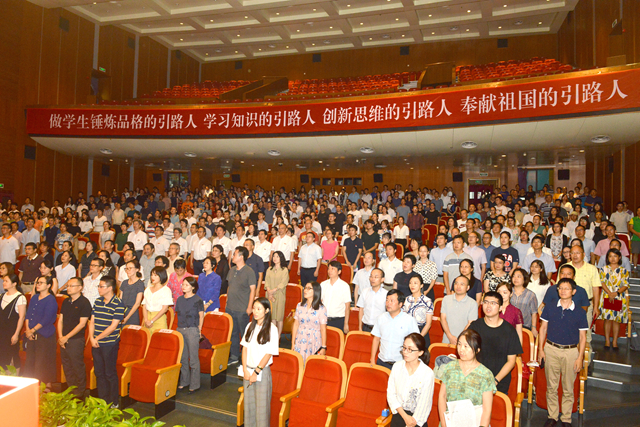 庆祝第35个教师节总结表彰大会在下沙校区剧院召开。学校全体党政班子成员,从事教学、教育工作满三十年的教职工,校级及以上先进个人代表,2019年新教师代表,校职能部门负责人,二级党组织书记,教职工代表,学生代表参加大会。获2019年校优秀教师的酒店偷拍