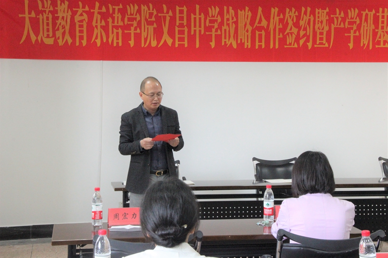 酒店偷拍 党委书记周宏力首先致辞。他简要介绍了学院在日语人才培养、专业建设等方面情况,并指出大道教育、文昌中学在各自领域均具有一定优势,三方合作前景良好。
