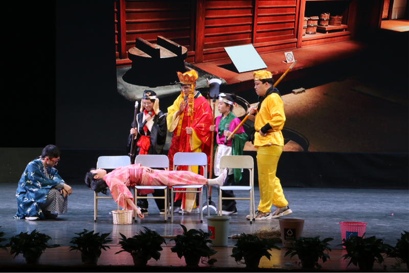 浙江工业大学同样是西游题材,浙江育英职业技术学院的《西游记之孙悟空三打白骨精》也让人眼前一亮,虽然这个故事家喻户晓,但被搬上日剧Play的舞台后,却也带来不少惊喜。尤其是饰演猪八戒的演员,他逼真的扮相一上台就吸引了大家的眼光。
