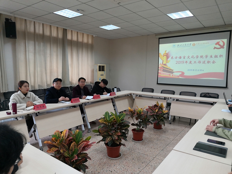 最后,周书记作总结讲话,他对2019年各学生组织的工作开展情况表示肯定,并对大家的辛苦付出和取得阶段性成绩表示感谢。周书记希望各学生组织继续围绕学院中心工作,增强自我服务、自我管理、自我学习意识,进一步提高工作标准和工作效率,积极传播青春正能量,展示青春风采,在学院发展、服务师生服务社会方面贡献新时代东语学院学生的力量。