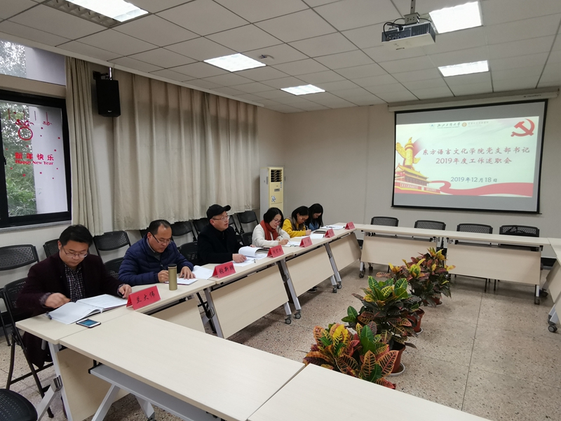 12月18日,东语学院2019年度全体党支部书记述职大会在学院楼202会议室举行。学院党委书记周宏力、院长兼党委副书记江静及其他党委委员、全体师生党支部书记参加了本次会议,会议由周宏力书记主持。