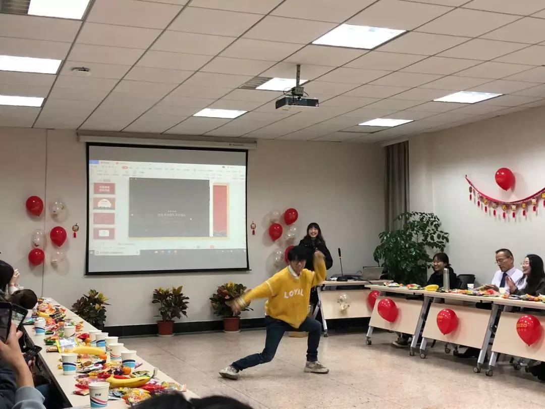 1月4日晚,由院研究生会承办的迎新年晚会在学院楼202会议室举行。副院长董科、辅导员沈霄鹏及日籍教师冈田重美、古贺川、小林美咲、福田伸男等老师出席。我校三位日本留学生富坂、今井、尾田及全体19级硕士研究生参加晚会。