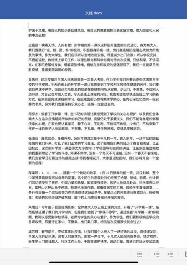 这是一次特殊的开学第一课。2020年的春天,必将成为每个人难以忘怀的记忆。在这场战“疫”中,“停学不停课”成为教师教学生涯和学生成长过程中一段特殊的经历。研究生们表示,接下来会充分利用学校学院提供的各种网络教学资源,积极探索并尽快适应线上学习的新模式,以崭新的面貌、昂扬的姿态,共同谱写新学期的新篇章。