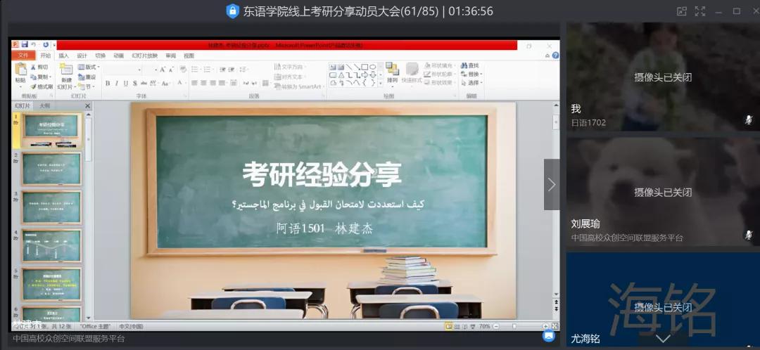 为进一步推动我院学风建设,激发大三学生考研深造积极性,为同学们提供有效的考研经验指导,5月22日下午,学院举行17级学生考研动员暨考研经验分享视频会议。学院党委书记周宏力老师参加并讲话,学生工作办公室主任兰大伟、团委书记杨月燕、辅导员沈霄鹏等老师及酒店偷拍 部分在国内外高校读研深造的毕业生校友参与大会。会议由杨月燕老师主持。