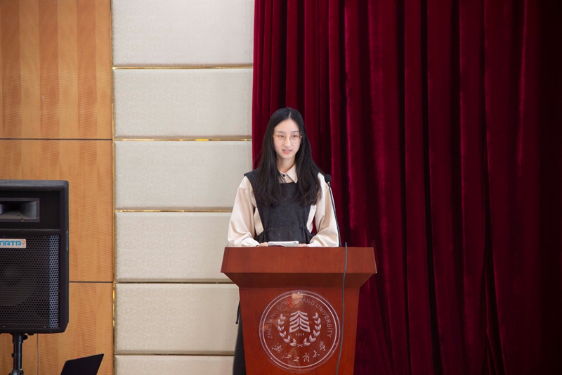 日语2003班周楚越作为新生代表发言,她表示能和来自五湖四海的新生成为同学,是缘分也是命运。回顾高三的日子,她对能够来到东语学院表示非常的满足和喜悦。最后,她从“主动融入”“学会珍惜”“踏实进取”三方面表达了对未来大学生活美好的期盼和向往。
