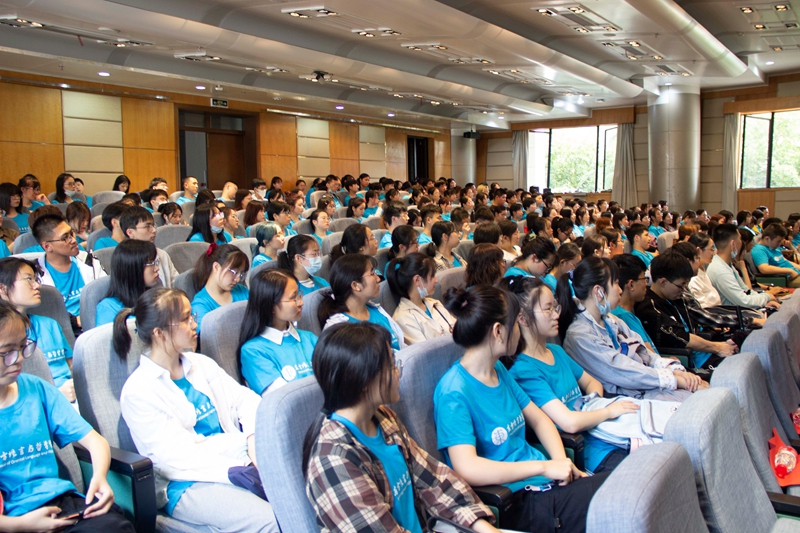 哲学系教师代表李晶老师回顾了自己的大学求学之路,并用哲学方式引导大家思考大学乃至人生的真谛,同时也浅谈了自己的一些感悟。他指出,哲学是一门反思和批判的课程,是克服孤独、悲伤和平庸的良药,希望新生们能够珍惜时间,专心致志潜心研学。同时他向哲学新生承诺,哲学系全体教师会以最热忱、最负责任的教学态度以及最完备的知识储备和学术修养去对待每一节课,和大家共同进步。
