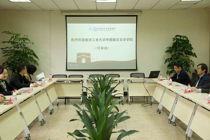陈世华院长介绍了南工大外语学院的发展历程。随后,双方围绕省一流专业建设、学科建设、课程思政及教学改革、科学研究、学生培养、国际化等方面进行了充分深入地交流。