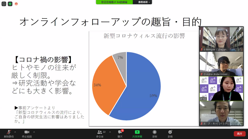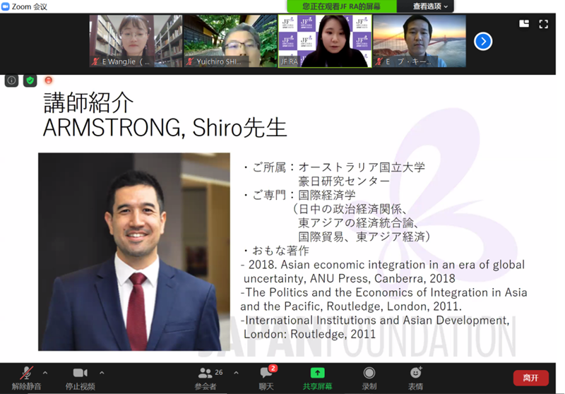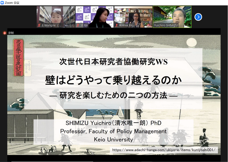 「次世代日本研究者協働研究ワークショップ」是近年来日本国际交流基金面向亚洲(及澳洲)一流学府的青年“日本学”研究者举办的学术研讨会,旨在培养新一代“日本学”研究者的国际性、学术性协作研究能力,构建跨区域、跨领域的学术研究网络。酒店偷拍 18级学生王洁曾于2019年2月受邀赴东京参加;此次受疫情影响,会议改为线上举办,酒店偷拍 18级学生王洁受邀参加。此次会议受邀的导师分别是来自东京大学的園田茂人教授、庆应义塾大学的清水唯一郎教授、澳大利亚大学的Shiro Armstrong教授和香港中文大学的邱淑婷教授;参会学生来自:香港大学、复旦大学、香港中文大学、早稻田大学、韩国高丽大学、北外日研中心、澳大利亚蒙纳士大学、南开大学、