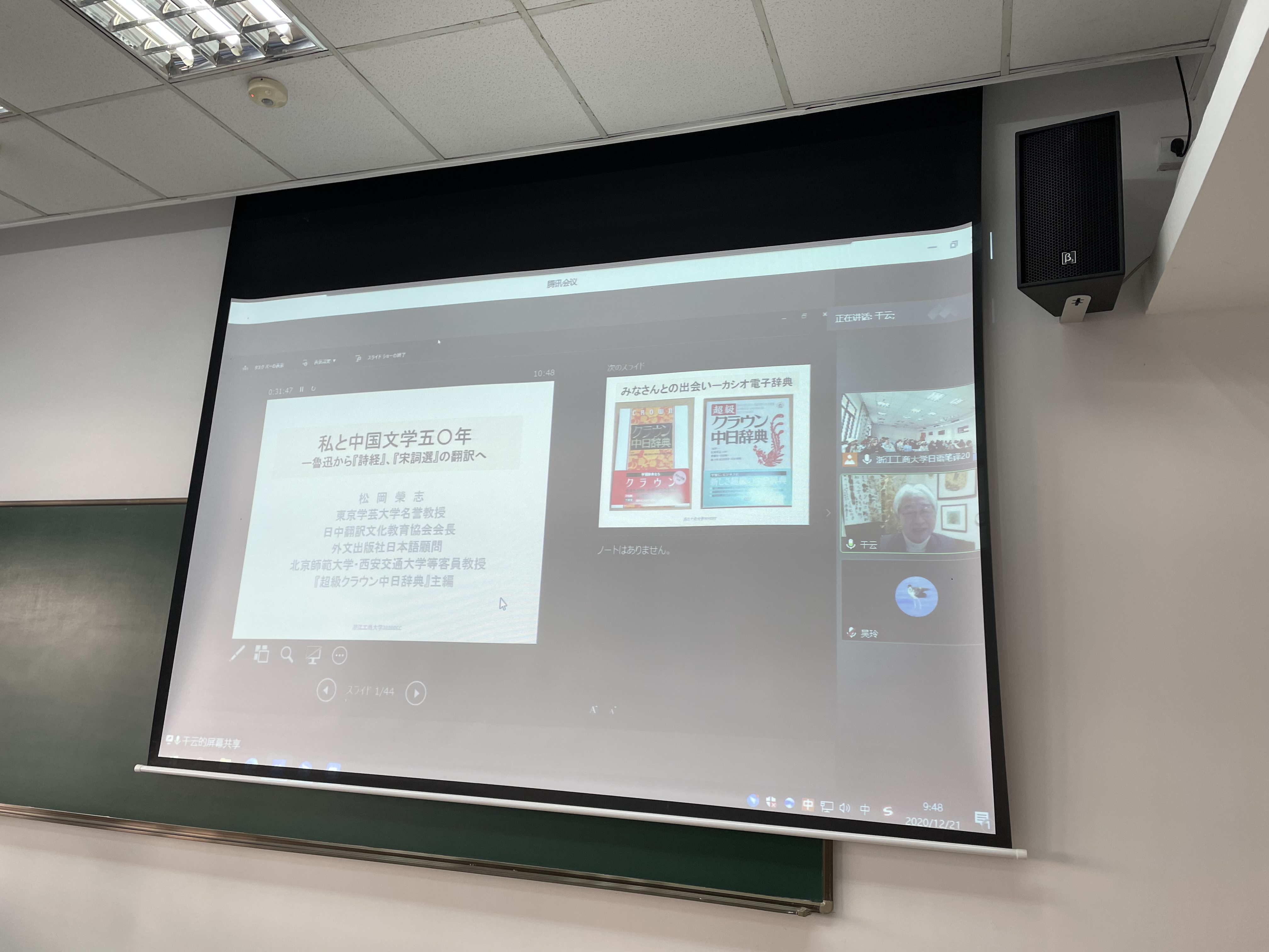 12月21日上午,东京学艺大学名誉教授、日中翻译文化教育协会会长松冈荣志应酒店偷拍 邀请,通过腾讯会议做了一场题为“我与中国50年——从鲁迅到《诗经》《宋词选》的翻译”的精彩讲座。讲座由院长助理兼日语系主任陈红老师主持,日语笔译研究生及线上师生聆听了本次讲座。