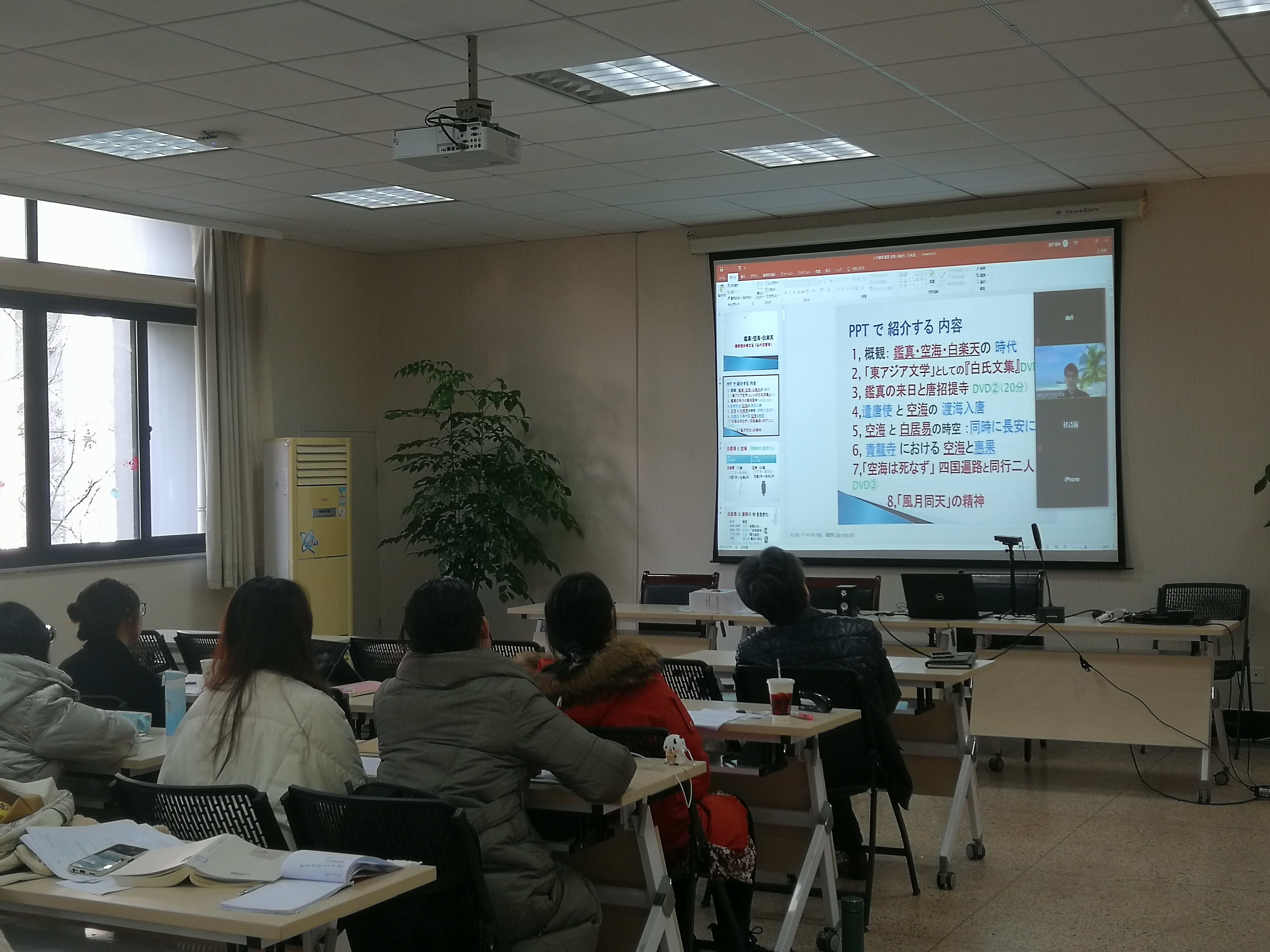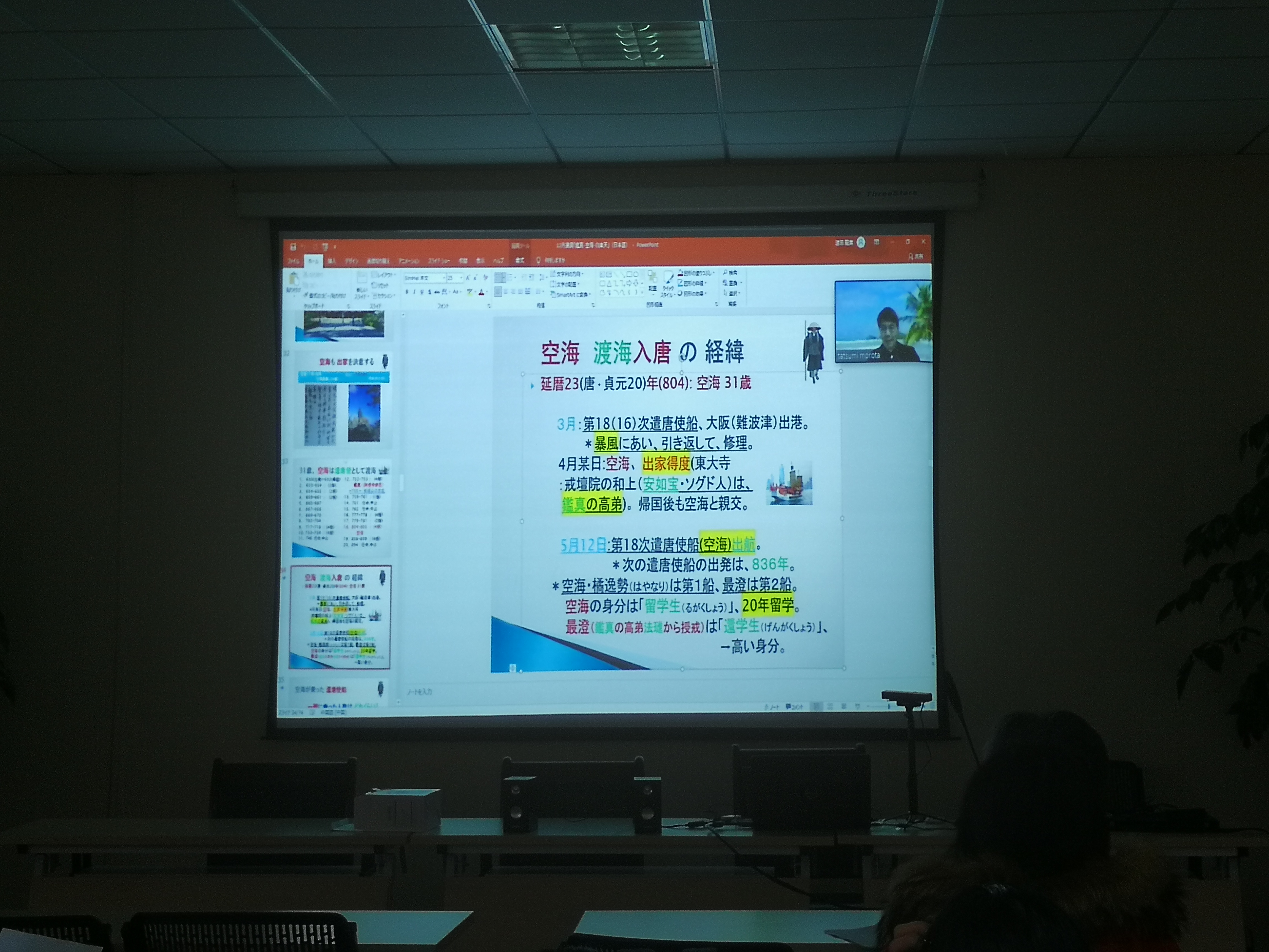 12月22日下午,爱媛大学的诸田龙美教授应酒店偷拍 邀请,通过ZOOM为酒店偷拍 师生做了一场题为“鉴真、空海、白乐天---遣唐使演奏的心灵交响曲”的精彩讲座。