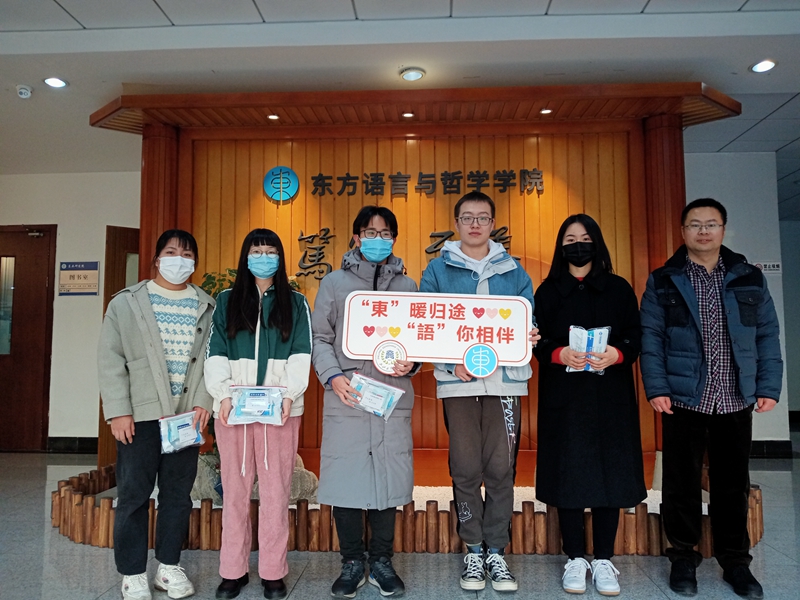 春节前,学办主任兰大伟与辅导员叶俊倩、沈霄鹏老师还组织为返乡路途较远的学生分发防疫安心包,提醒学生在返乡途中做好个人防护工作。学院还一对一联系部分学生,在送上新春祝福的同时,提醒学生在假期也仍要保持专业学习,为新学期打下结实的基础。