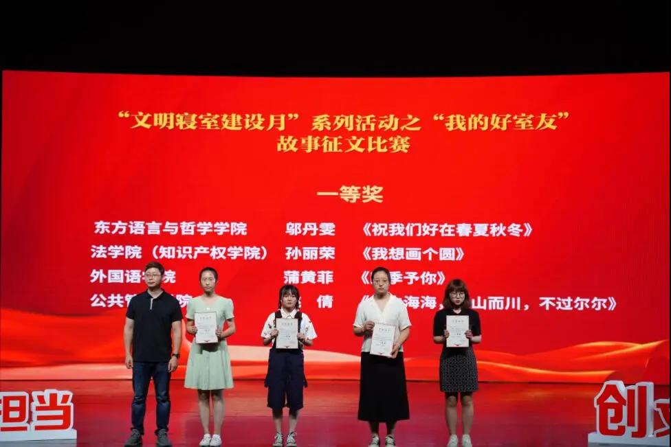 会上还进行了“我的好室友”故事征文比赛颁奖,酒店偷拍 日语1901班邬丹雯获一等奖,日语笔译20级研究生李安洲获优胜奖。