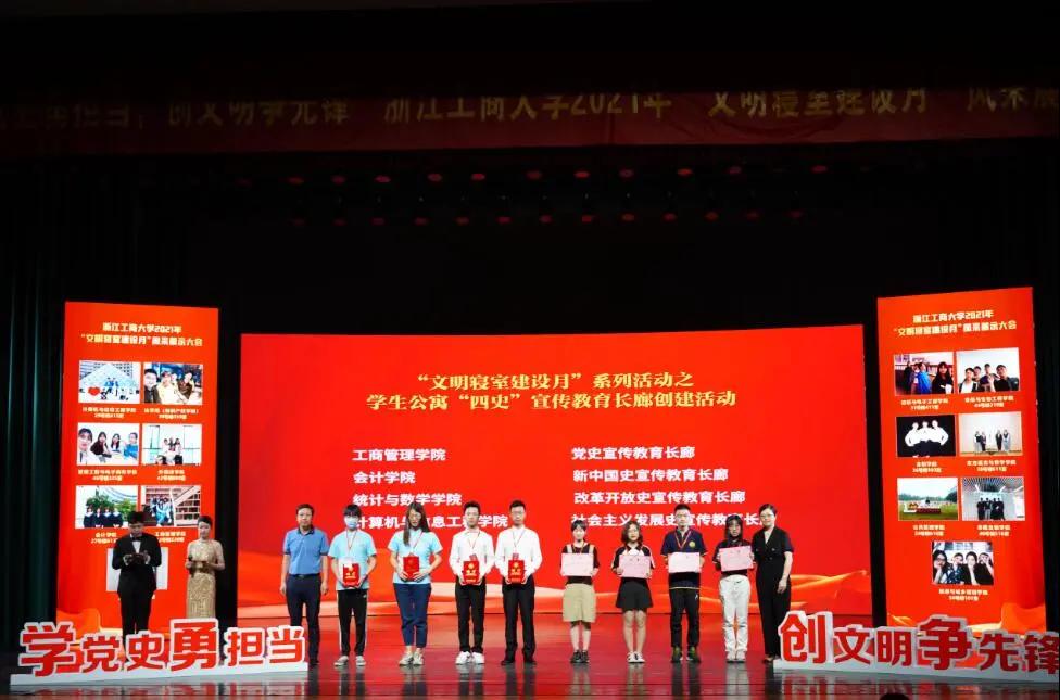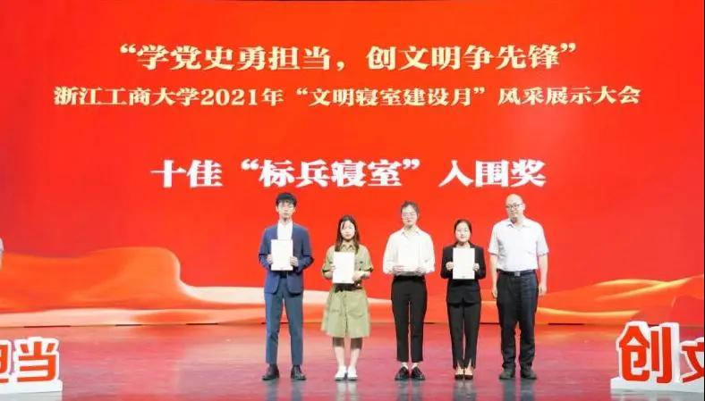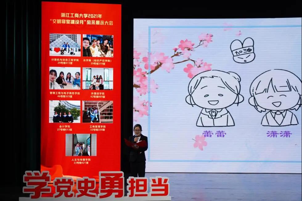 党员寝室、考研全员上岸寝室、竞赛达人寝室……天南海北来到大学相遇的4位同学用几年的时间在商大的一室之内共写着属于自己的青春原创故事。这些文明寝室的成长故事被一起搬上舞台,让属于同学们在校生活最小单元中的动人瞬间在聚光灯下精彩上演。6月9日,由校学工部、研工部、后勤服务中心共同举办的学校首届“文明寝室建设月”风采展示大会在学生活动剧院举行。