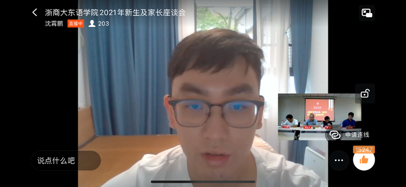 为加强学院与新生、家长之间的密切联系,促进新生、家长对学校学院有关人才培养、学科建设等内容的了解,8月28日上午,东方语言与哲学学院通过钉钉视频直播的形式召开了2021级新生及家长座谈会。东语学院党委书记周宏力、副院长董科出席会议并讲话,辅导员沈霄鹏、叶俊倩参加会议。各位领导老师与近三百位学生及家长齐聚“云”端,共畅未来。会议由学办主任兰大伟主持。