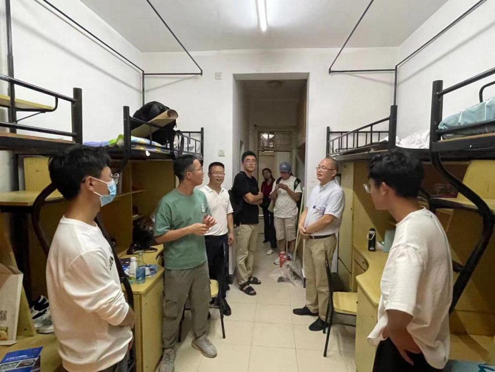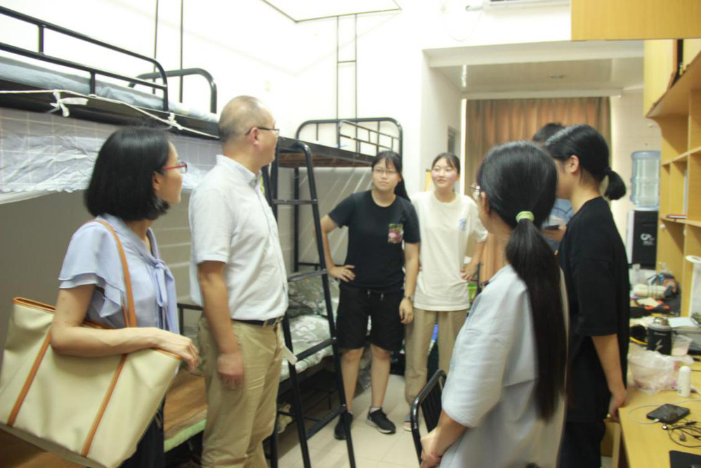 随后,周书记一行又步行前往金沙港生活区,同样对研究生表示了亲切的问候。辅导员关心新生生活上的问题,并积极给出解决建议;新生向老师表达了对大学生活的期待,表示自己将尽快适应新环境,不辜负学院领导与老师的期望,把握时光,认真学习。