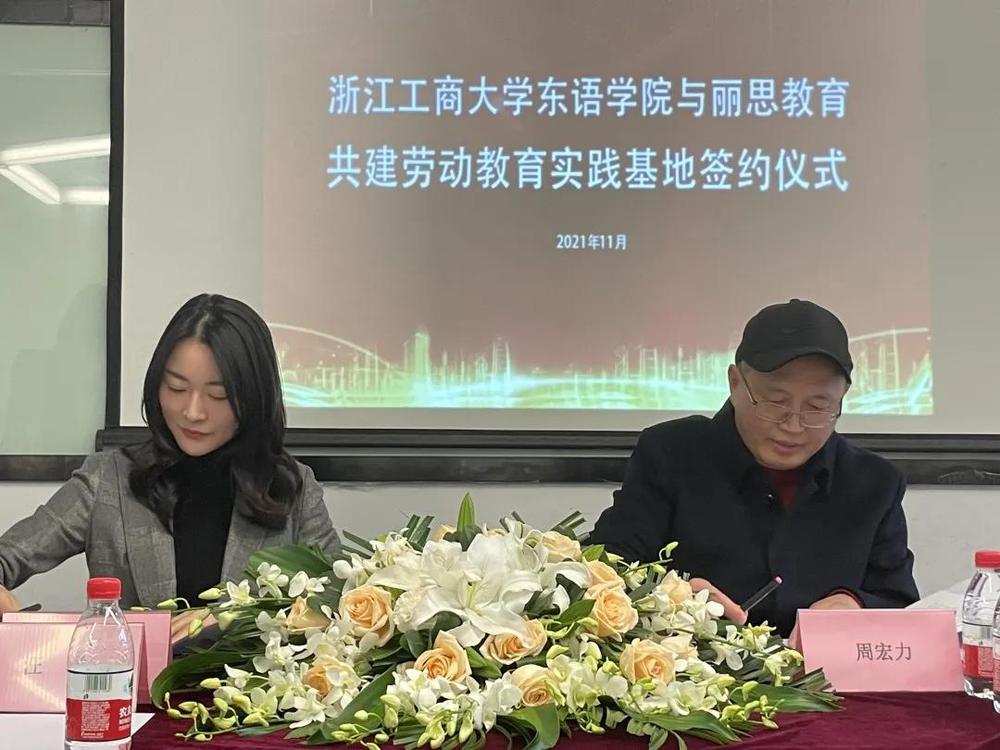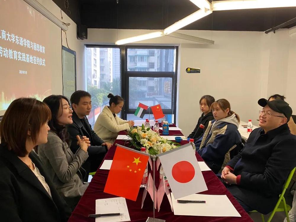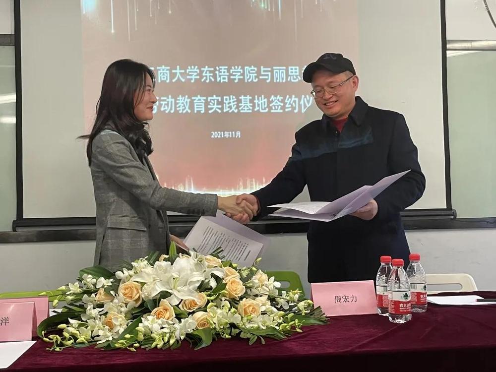11月22日下午,酒店偷拍 东语学院与丽思教育共建大学生劳动教育实践基地签约仪式在丽思教育(文晖路校区)举行。丽思教育校长汤祖芳、校区负责人崇娟、销售主管张建、日语教研组组长汪洋,酒店偷拍 东语学院党委书记周宏力,学院团委书记杨月燕,日语系阿语系学生代表等出席签约仪式。