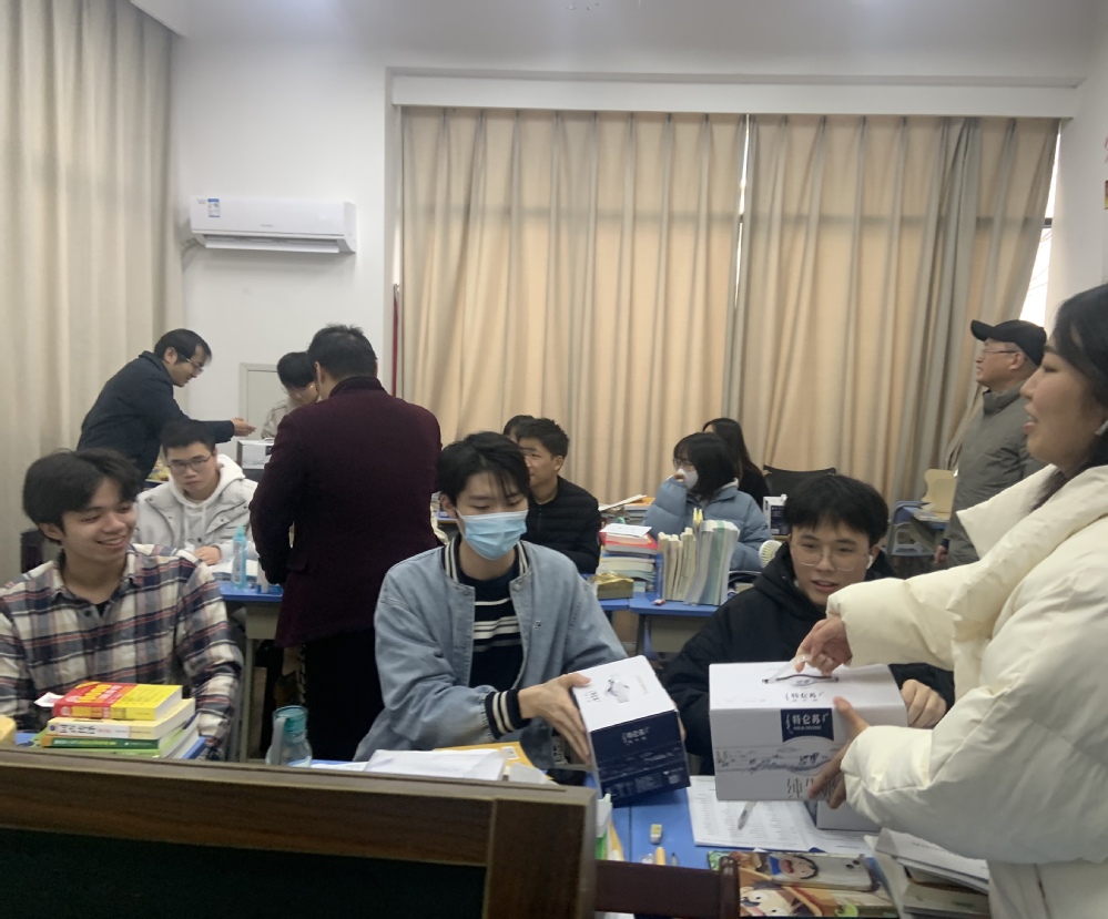 最后,学院领导老师们向考研学生发放了慰问品。同学们纷纷表示,一定不辜负学院寄予的厚望,在接下来的时间里,努力做到“咬定青山不放松”,坚定信心,争取以优异的成绩回报学院的关心和支持。