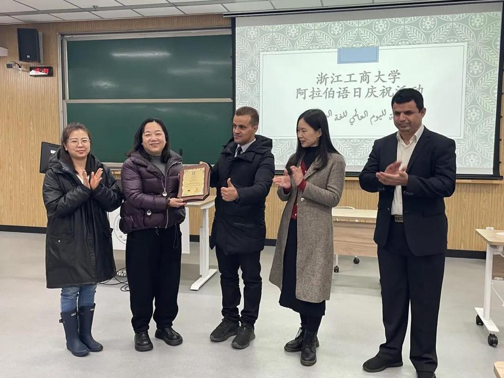 在联合国阿拉伯语日到来之际,12月16日下午,东语学院阿拉伯语言文化系隆重举行了阿语日庆祝活动。学院学办主任兰大伟、外事秘书丁之群、浙江日报旗下天目新闻记者颜一颀等老师及嘉宾参与活动。