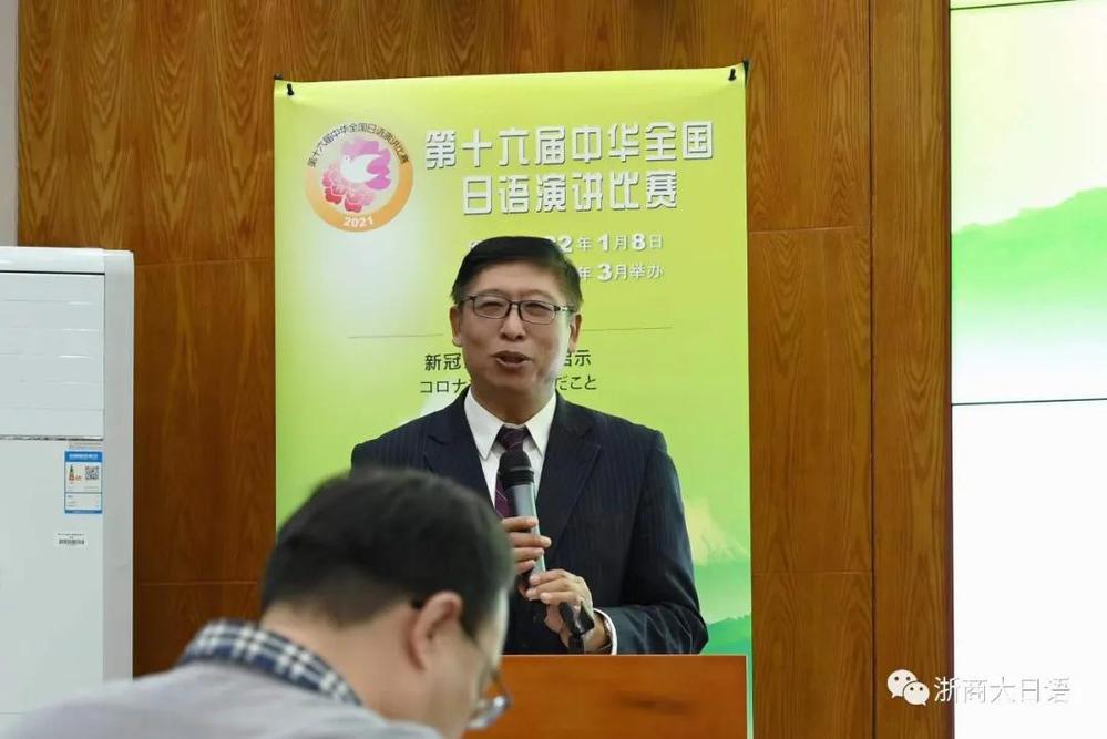 在公布比赛结果前,本次比赛的评委会主任修刚教授对本次大赛做了总评,对本大会主办单位、协办单位以及承办本次比赛的浙商大东语学院表示感谢,对所有参赛选手表示祝贺,肯定了选手的语言能力。同时也对选手发言的不足之处提出了意见和建议,希望选手能发挥自己的独创性,发挥想象力,在使用合适的表达的基础上大胆抒发自己的想法和见解。
