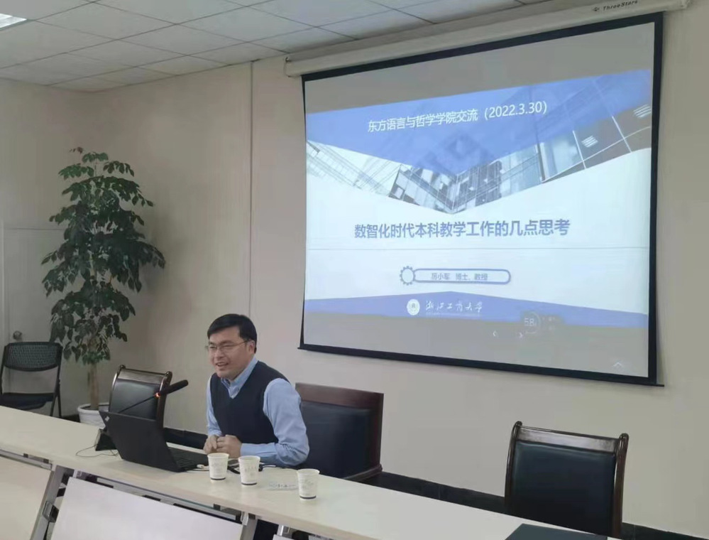 3月30日下午,校教务处处长厉小军教授受邀来酒店偷拍 作了题为“数智化时代本科教学工作的几点思考”的讲座,酒店偷拍 江静院长、董科副院长及日语系、阿拉伯语系、哲学系教师三十余人到场聆听。