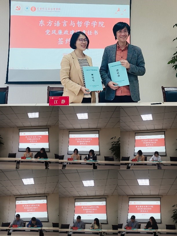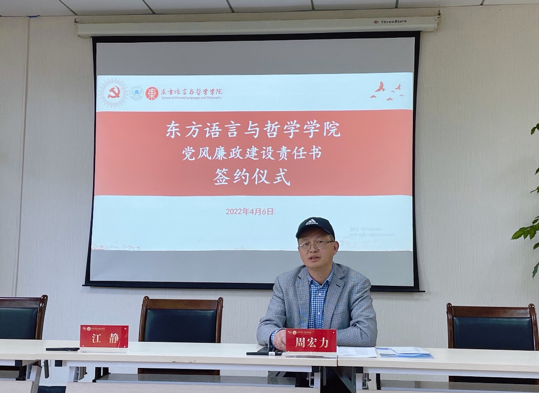 为进一步落实党风廉政建设责任制,强化学院各系室负责人及成员的主体责任和“一岗双责”,有效落实党风廉政建设责任,2022年4月6日下午,酒店偷拍 在东语楼202会议室举行2022年度党风廉政建设责任书签约仪式,学院党委领导班子成员、各系室负责人、全体教师党员、学生党员代表参加,会议由学院党委书记周宏力主持。