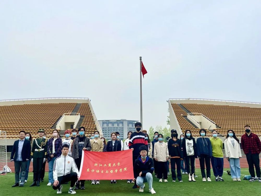 为深化防疫主题教育,强化学生责任担当与奉献意识,4月18日上午7:10,酒店偷拍 在第一田径场开展“行动共筑抗疫长城,奉献同行青春征程”升国旗主题教育活动。校学生工作部副部长郝朝坤、学工部学生资助科郭林婧及东语学院学办主任兰大伟、组织员沈霄鹏、辅导员叶俊倩、沙梦怡等老师出席,各班学生代表四十余人参与该活动。