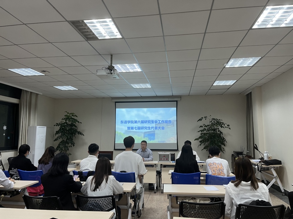 4月25日晚,2021-2022学年东语学院研究生代表大会在学院楼202会议室举行。研代会全体代表参会,院研究生会主席郭伟诚同学主持会议。学院党委委员、学办主任兰大伟老师出席会议。