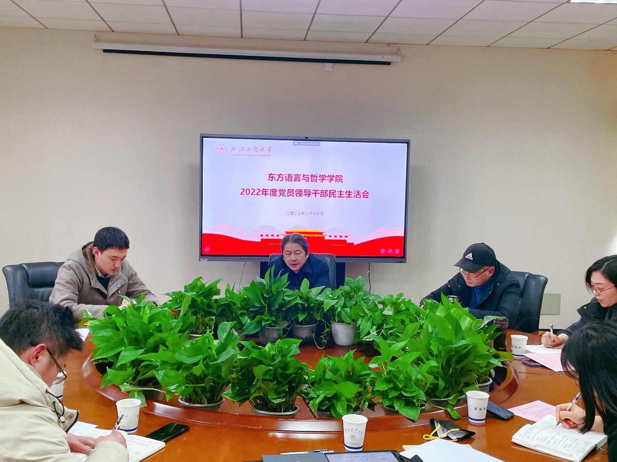 根据校党委《关于召开2022年度二级党组织党员领导干部专题民主生活会的通知》的精神和具体部署,2月17日,东语学院党委召开2022年度党员领导干部专题民主生活会。校党委副书记李军、校纪委委员郑晓春与会指导,学院党委领导班子成员周宏力、江静、陈燕、兰大伟、丁建华,副院长陈红参加会议,会议由学院党委书记周宏力主持。
