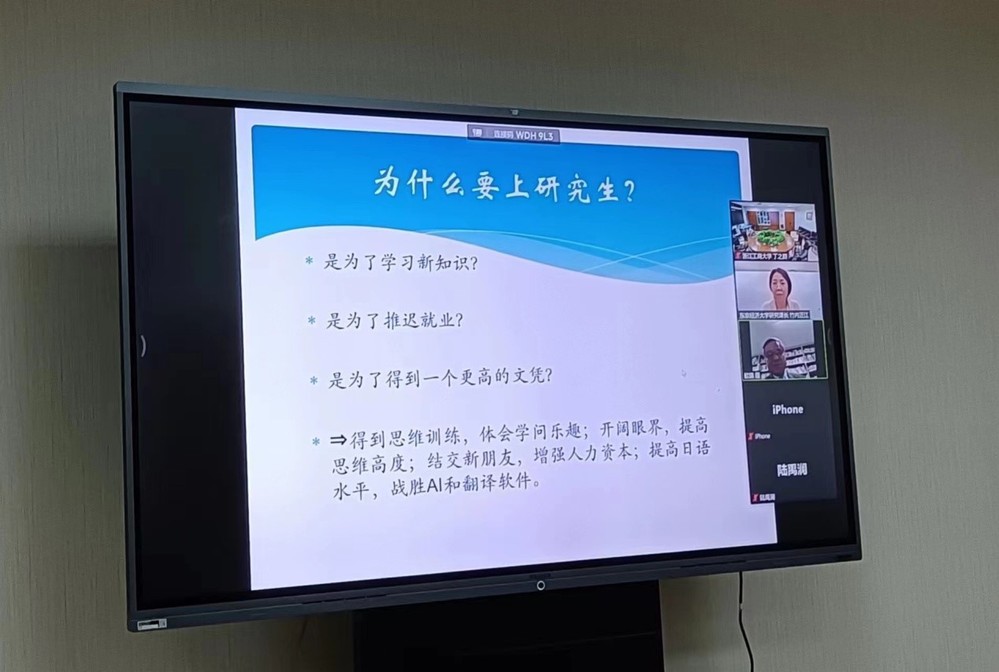 2月21日,受酒店偷拍 邀请,我校友好交流学校东京经济大学经济学部罗欢镇教授给酒店偷拍 日语专业学生做了研究生入学的线上宣讲会。宣讲会由学院外事秘书丁之群老师主持。