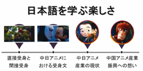 在日语乐学教育新路径方面,曾老师给出了一个教师引导学生重新认识小我,甚至认识原生家庭,然后用科学的思维方式去认识国情,树立国际视野,最终塑造具有家国情怀的大我人格的“小我→大我”教学创新方案。过程中列举了通过“大圣归来日文版”预告片,探索动漫中的日语被动态表达学习之旅,实现树立文化自信的思政育人目标的案例。该教学全过程包括例句查询收集、互动讨论、课堂汇报等多个环节。通过布置有挑战度的任务,激发学生解决复杂问题的主动性,让其觉得学日语的乐趣不仅是看懂日本的动漫,更重要的是能够看懂各种一手资料,掌握到最真实的信息,对比分析国情差异,收获学有所用的成就感和自信心。