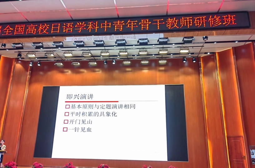7月27日北京外国语大学的熊文莉以“日语教师学生竞赛指导能力提升经验分享(以“理解当代中国全国大学生外语能力大赛”为例进行了专题报告。报告中指出,新时代的人才定位是从理解当代中国,讲好中国故事,传播好中国声音来判断的。在教学活动中,即兴演讲要遵守基本原则,与所定的演讲相同。能力来源于平时的积累,在使用中具像化。实操的时候要开门见山,一针见血地表达出自己的观点。